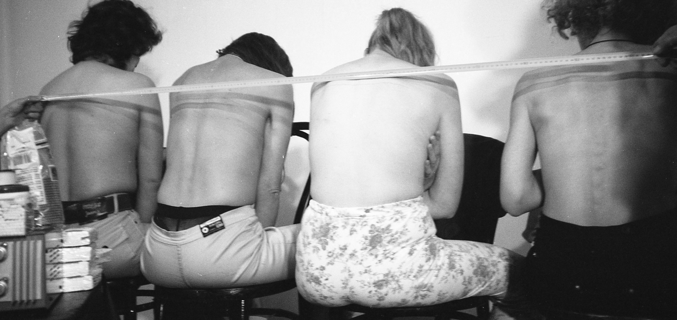 250 CM LINE TATTOOED ON 6 PAID PEOPLE. Espacio Aglutinador, Havanna, Kuba, Dezember 1999; HIRING AND ARRANGEMENT OF 30 WORKERS IN RELATION TO THEIR SKIN COLOR. Project Space, Kunsthalle Wien, Österreich, September 2002