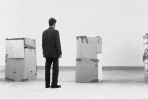 Beurteil man das Geschehen aber sachlich, muss man festhalten, dass Sierra einen objektiven Zustand wiedergibt. Die engagierten Personen befinden sich – in ihrem Leben wie in Sierras Werk – in einer normierten Situation, die ihre Körper und ihren Handlungsspielraum eng umschließt und in der ihnen nichts weiter bleibt, als auszuharren. Die Isolation, in der sie sitzen, entspricht ihrem sozialen Status. Dazu gehört auch, dass das Kunstpublikum sich in aller Regel nicht ernsthaft für sie interessiert – und wenn dann wiederum nur „abstrakt“, als sozialkritisches Thema. Vermutlich waren nur wenige von denen, die die Aktion sahen, zuvor einem Asylbewerber physisch und ggf. emotional so nah wie in dem Moment, als sie oder er in der Ausstellung an einem der Kartons lauschte, ob auch wirklich jemand darin saß, und sich dann vielleicht ergriffen oder auch empört darüber zeigte, dass es so war. Wenn Sierra die sechs Arbeiter in einer Reihung von sechs Kuben für sein Publikum unsichtbar macht und im Raum abkapselt, ist seine Anordnung exakt realistisch.