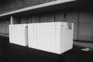 Sierras erste fotografische Serie hält in 36 Bildern 18 Situationen fest, die der damalige Student an der Hamburger Akademie bei Spaziergängen im Stadtraum vorfand: Stapel von Paletten, Steinplatten und andern Baumaterialien, deren Anordnung die strukturelle Systematik von Carl Andre, Sol LeWitt, Donald Judd und anderen Vertretern der Minimal Art wachruft. Dem rationalen Gleichmaß von deren Werken folgen Sierras Fundstücke freilich nicht. Sie zeigen gerade umgekehrt, wie sehr der minimalistische Formalismus seine Bezüge zur industriellen Produktion idealisierte und stilisierte, und folglich weder in der Lage war noch ein Interesse daran hatte, in der geometrischen Standardisierung industrieller Maße eine vor allem ökonomische Rationalität effizienter Fertigungs-, Transport, und Konstruktionsprozesse zu erkennen, in welche sich die ausführenden Arbeiter einzufügen hatten. Jedes der von Sierra vorgefundenen Motive dokumentiert eine Abweichung von dieser Rationalität als Interferenz von Produktivitätsanforderungen einerseits und einer subtil widerständigen Subjektivität andererseits, die sich nur so weit ins formale Diktat fügt wie eben nötig. Wie schon PRISM bietet auch WALKS programmatisch je zwei verschiedene Blickperspektiven auf ein und den selben Gegenstand und widerspricht so auf der Wahrnehmungs- ebenso wie auf der Darstellungsebene dem minimalistischen Essentialismus, der sich von der individuellen Blickrichtung auf das Gegebene unabhängig wähnte.