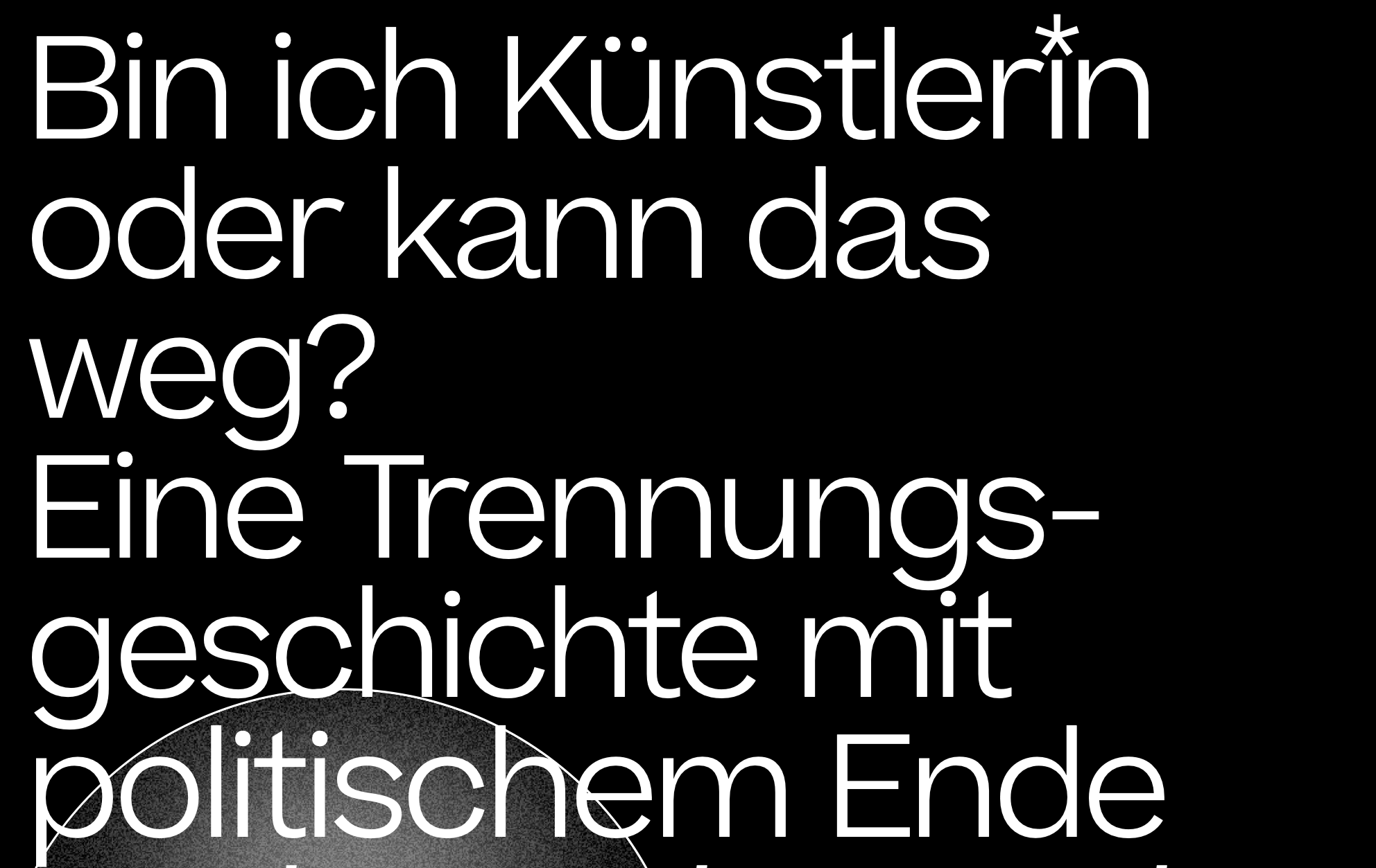 Manche Trennungen widerfahren einem ohne eigene Absicht, andere führt man willentlich herbei. Sich von der eigenen Künstler*innenrolle unwillentlich zu trennen, weil Anerkennung ausbleibt, das Geld knapp wird, oder aus anderen Gründen, die Menschen dazu bringen, ihre Künstlerlaufbahn abbrechen zu müssen, das geschieht millionenfach und soll hier ausgeklammert bleiben. Denn mich interessiert der andere Fall: Wenn die Trennung von der eigenen Künstler*innenrolle eine willentliche und bewusste Entscheidung ist, obwohl die Karriere ganz gut läuft, die Anerkennung da ist, man also weitermachen kann, es aber nicht will.