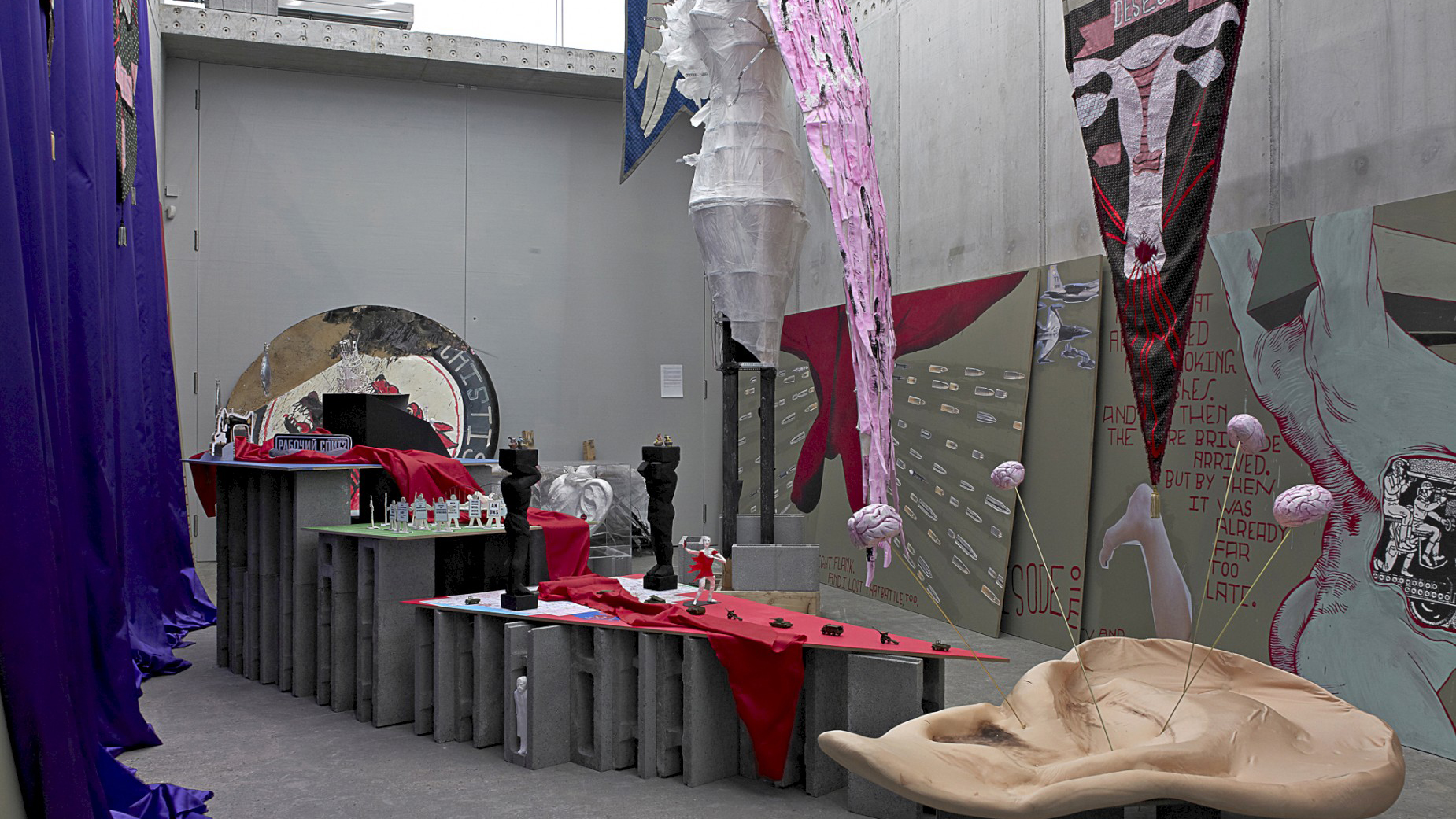 Kann man diesen Zweifel an der Hoffnung â und an der Kunst â ausstellen? KOWs kuratorischer Ansatz zur Adaption von „Time Capsule. Artistic Report on Catastrophe and Utopia“, Chto Delat?s erster monografischen Schau in einer Galerie, folgt dem Impuls, die Ausstellungsproduktion auf einer Schwelle der Unsicherheit zu balancieren. Der Galerieraum wird zum Theaterlager, angefĂŒllt mit Requisiten. Teile der Secessions-Ausstellung â etwa eine 38 Meter lange Wandmalerei, entstanden im Rekurs auf Klimts Beethovenfries â werden in Berlin fragmentiert, verlieren Werkcharakter. Halb auf der VorderbĂŒhne inszeniert, halb auf der HinterbĂŒhne abgestellt in einer Warteschleife zwischen zwei AuffĂŒhrungen, stehen die gezeigten Dinge auf unsicherem GelĂ€nde. Ihre Funktion, ihr Status sind fragwĂŒrdig. Die ReprĂ€sentation hat Risse.