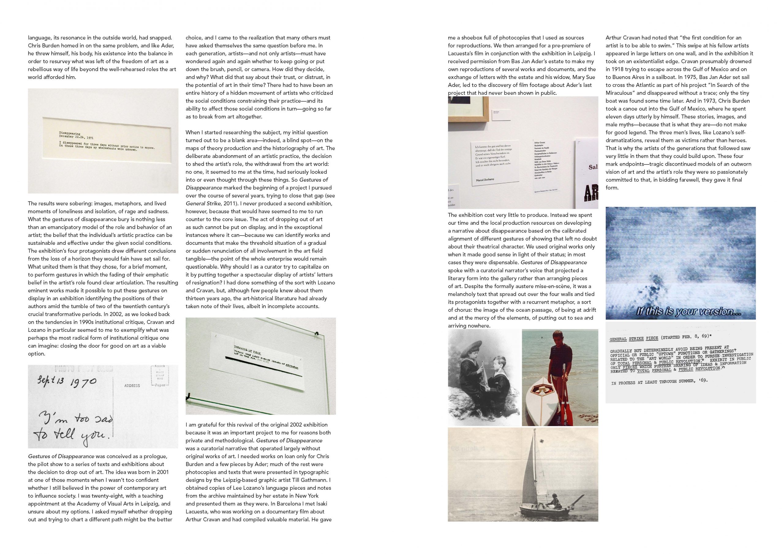 Es war ein Glücksfall für mich, dass die Kunsthalle Bergen ein ambitioniertes Programm hatte, in dem sie historische Ausstellungen rekonstruierte (Reihe „NO.5“). So war es mir möglich, meine Ausstellung von 2002, die in Leipzig nur wenig Publikum hatte, vollständig wiederherzustellen und noch einmal zu zeigen. Â