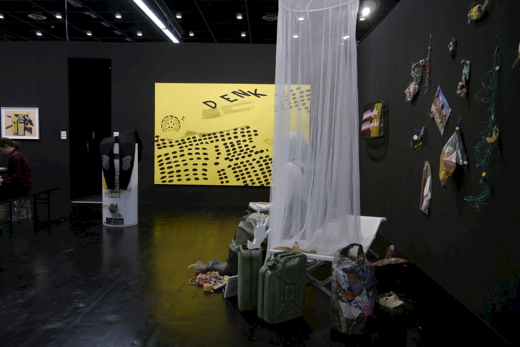 In den ersten Jahren des Galerielebens machten wir alles selber. Oft unter abenteuerlichen Bedingungen. Wirklich gut war, die Messestände als öffentliche Auftritte zu verstehen, als Ausstellungen und als Statements. Unter den Laborbedingungen eines Messestandes kann man mit Konventionen spielen. Wir waren in Basel, Brüssel, Köln, Düsseldorf, London, Madrid, New York, Paris, Turin.