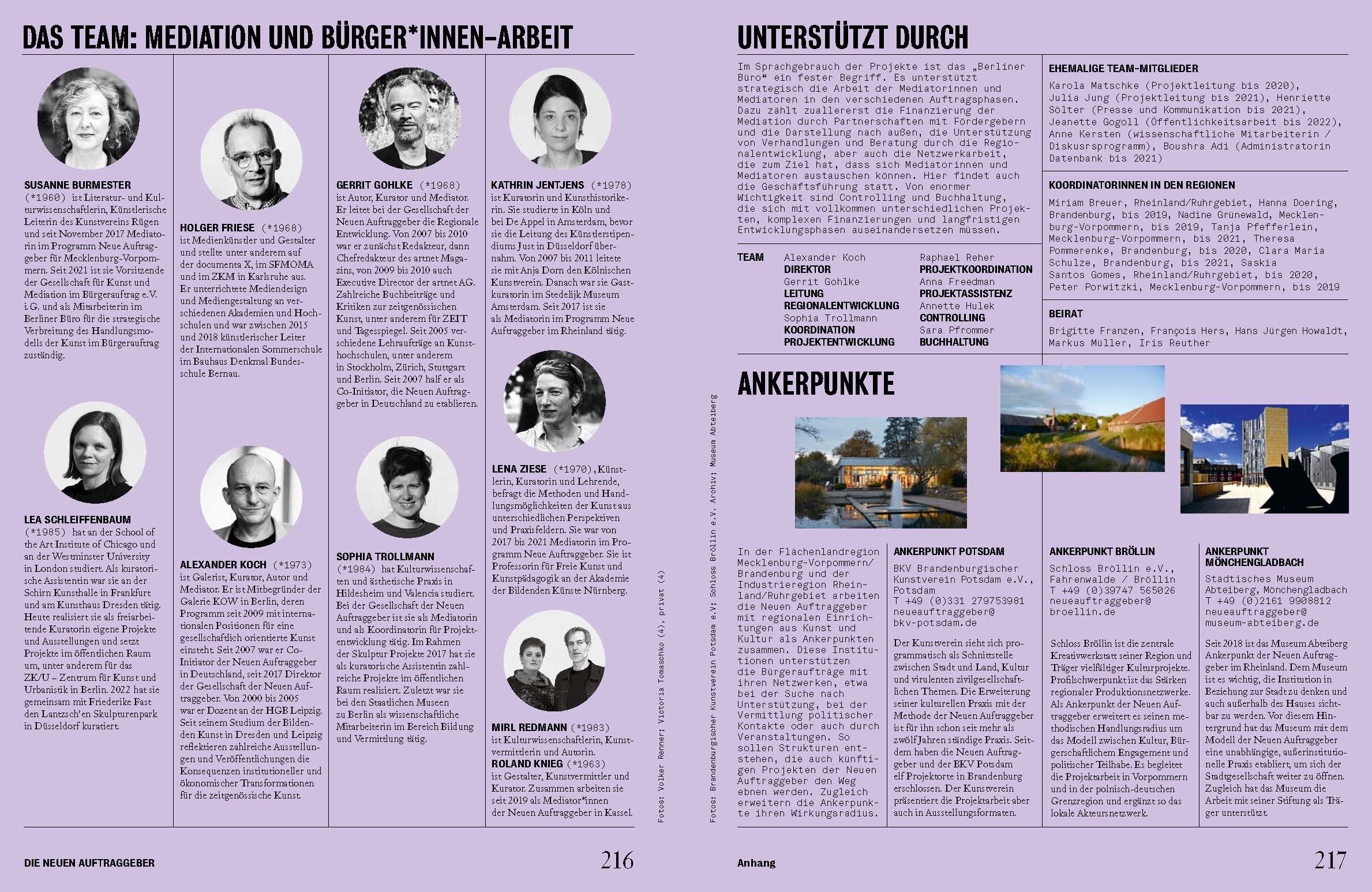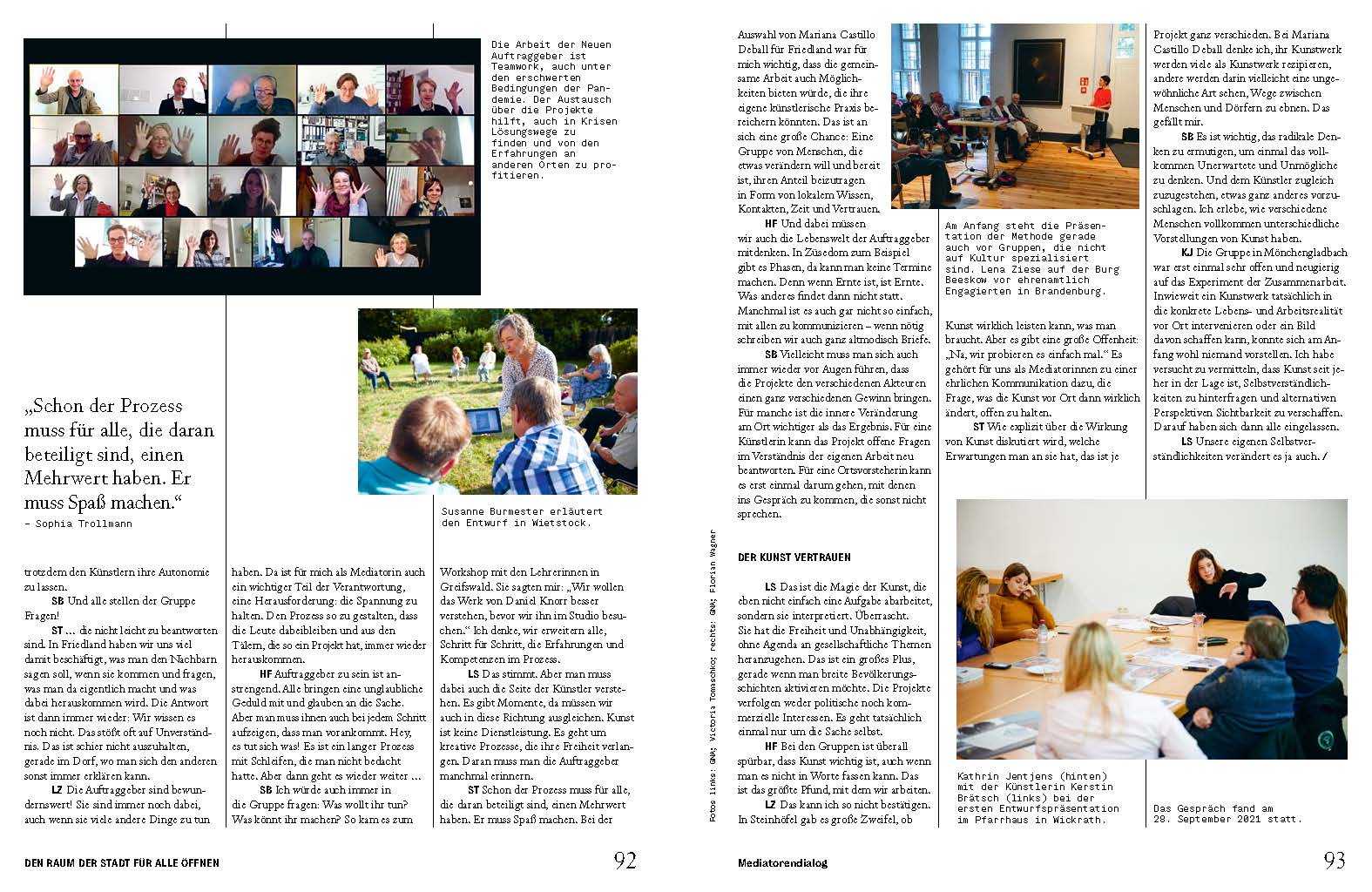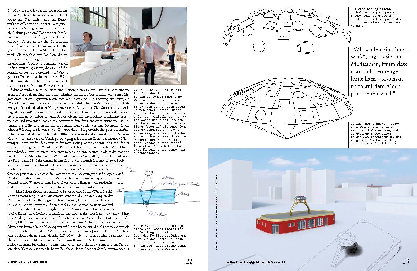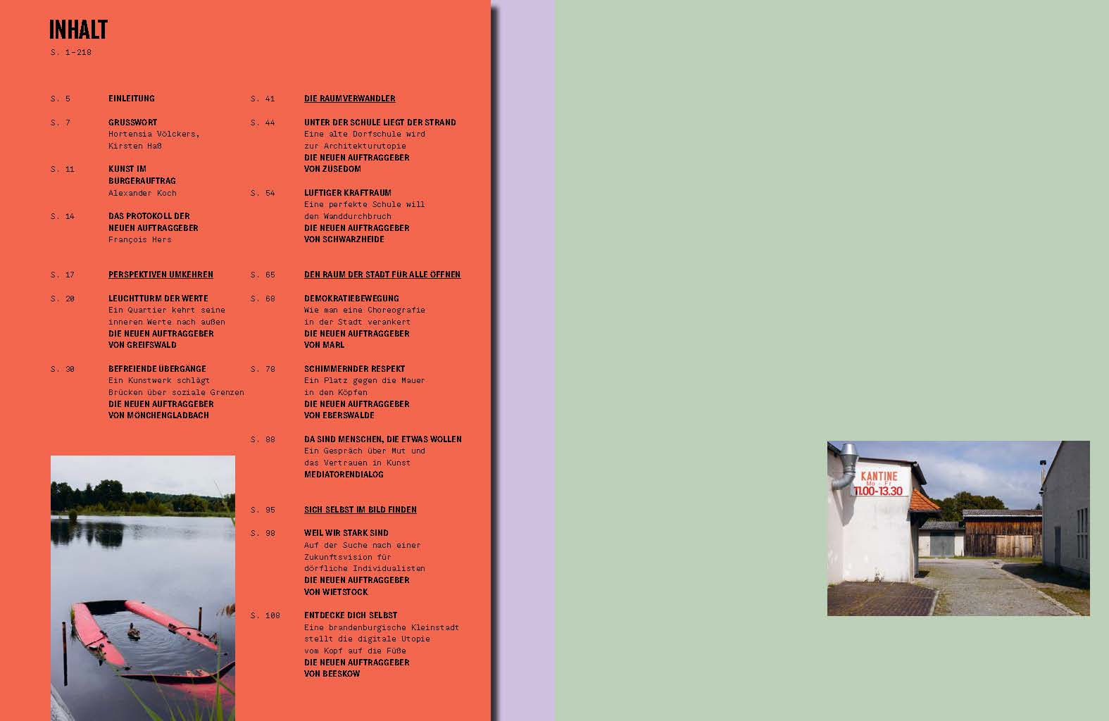 Jeder der 17 Orte wird als eigene Fallstudie erzählt. Die Entstehung der Projekte wird vom ersten Tag bis zum fertigen Entwurf nachvollziehbar. Damit wird das Buch auch zum Arbeitsbericht über einen gesellschaftlichen Dialog, der ergebnisoffen beginnt und den großen Themen sozialer und politischer Debatten nicht ausweicht, sondern sie in handfest konkrete Vorhaben übersetzt. Es ist ein Buch über 17 überraschende Zukunftsvisionen – und ein Vorschlag, der Kunst einen größeren Stellenwert bei der Lösung dringender gesellschaftlicher Fragen zuzuerkennen.“