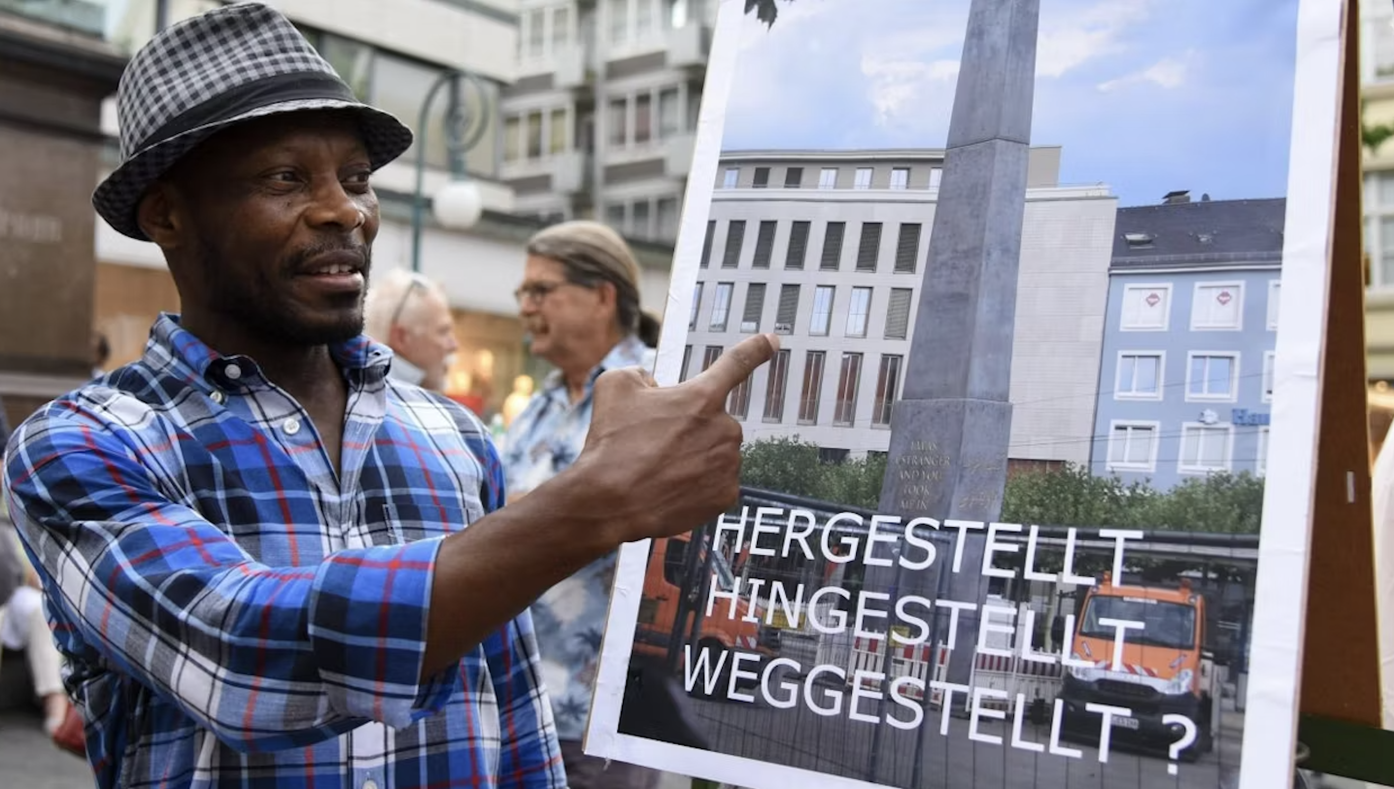 „Auch bei vielen Bürgern kam der Obelisk zunächst gut an, andere lehnten ihn aus ästhetischen oder politischen Gründen ab. Zunehmend verstärkte sich die Kontroverse in Kassel, die sich zu einem Klima der Feindseligkeit gegenüber dem Künstler auswuchs. Der AfD-Stadtverordnete Thomas Materner nannte den Obelisken 2017 im Kulturausschuss der Stadt „ideologisierende und entstellende Kunst“. Im Jahr darauf drohte er Kundgebungen an, sollte Oguibe nach Kassel kommen. Auch Befürworter des Mahnmals, darunter der frühere Kasseler Oberbürgermeister Hans Eichel, demonstrierten im Sommer 2018 für einen Verbleib des Oguibe-Obelisken in der Stadt.