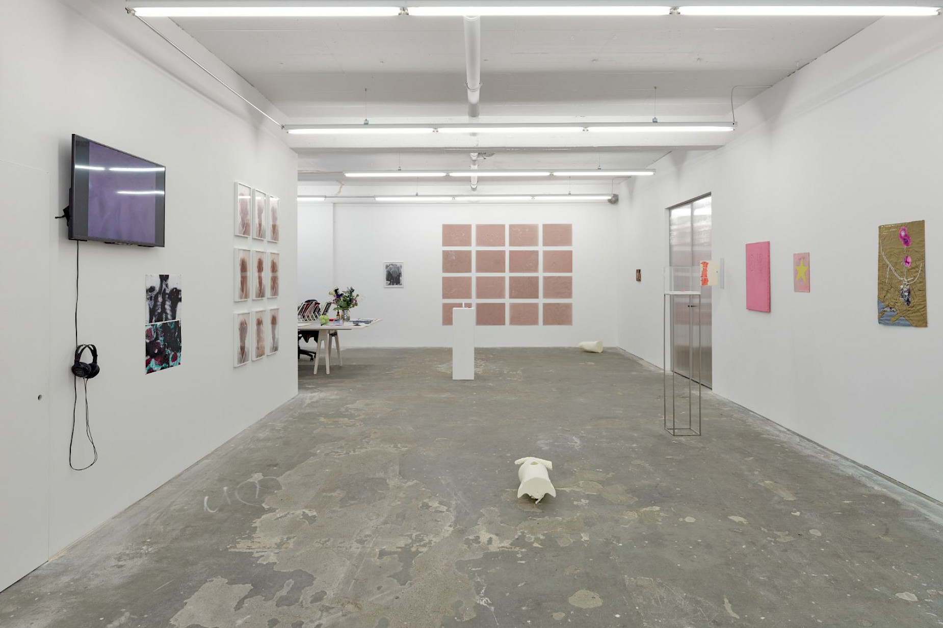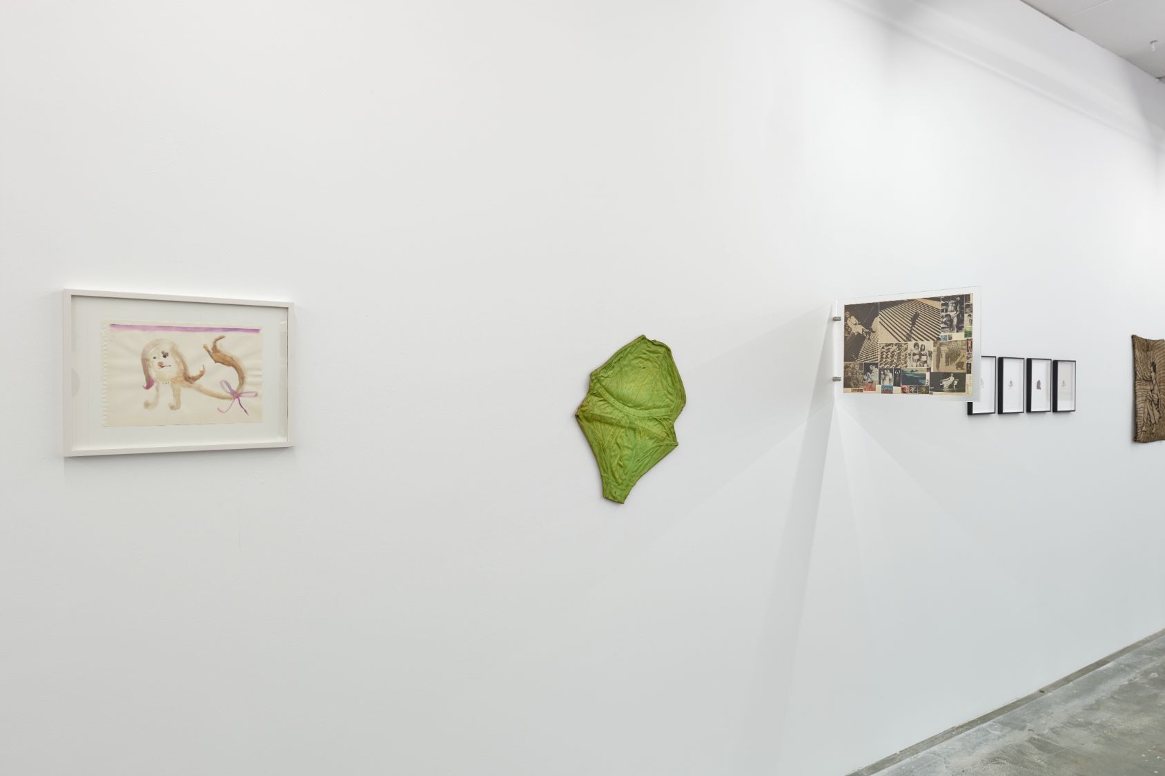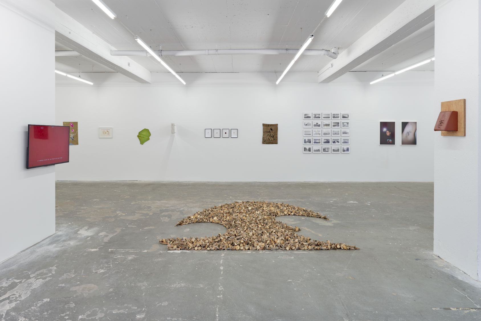 Michael E. Smith (US) erschafft eine Materialität prekärer Grundbedürfnisse. Seine Arbeiten erscheinen wie Restbestände einer aus der Zivilisation gefallenen Dingwelt, die noch die Blessuren ihres menschlichen Gebrauchs tragen. Am Boden liegen ein halbes Batman-Symbol, geformt aus den vertrockneten Stielen von Kürbissen (Untitled, 2020), und 3-D-Prints von computertomographischen Aufnahmen der Torsi zweier Hunde.