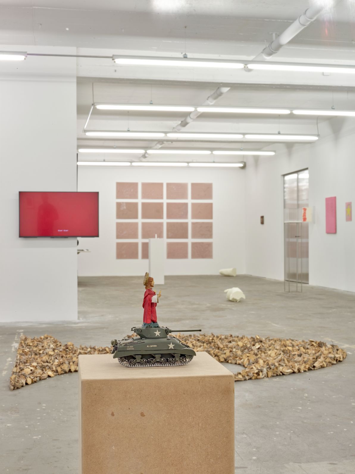Für León Ferrari (AR) war die katholische Kirche ein Gewaltregime, das er vielfach in klar blasphemischen Werken kritisierte und verhöhnte. Sein kleiner Panzer mit Jesus (Untitled, um 2008) bringt die Allianz zwischen Moral und Militär, Religion und Krieg auf den Punkt – oder auch heutige Ambivalenzen und Konflikte zwischen Pazifismus und Militarisierung?